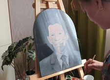 После окончания работы над заготовкой, плита была передана художнице-портретистке, которая и продолжила работу над ним. Для начала она покрыла гранит специальным раствором, на который в дальнейшем и будут наноситься краски.